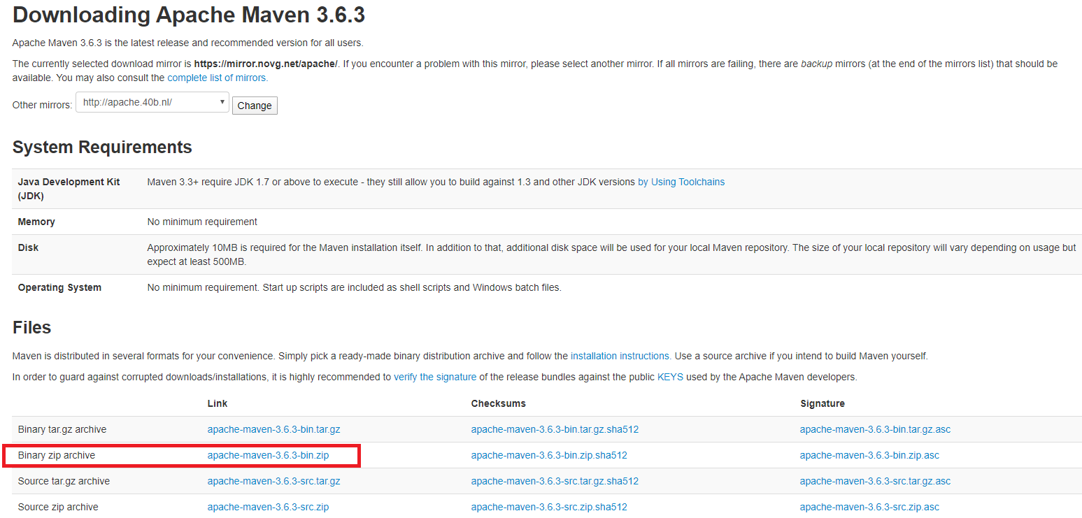 Go to https://maven.apache.org/download.cgi to download Maven (select the Binary zip archive in the Files section).