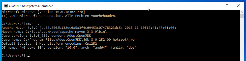 In the terminal Window, type run mvn -v followed by Enter, to verify the installation. The result should look similar to