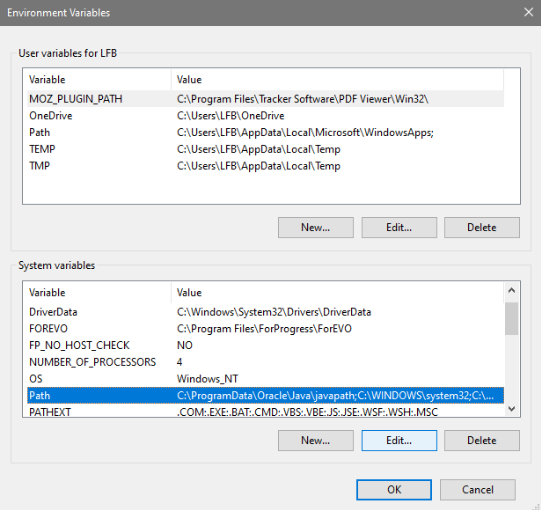 Select the PATH variable in the System Variables section (the lower half), click on “Edit”.
